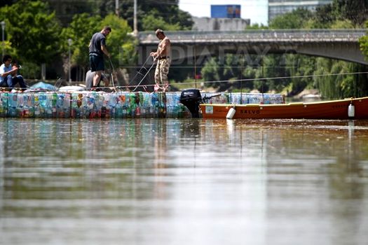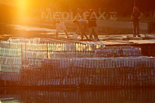 Podul a fost inaugurat miercuri după-amiază, în pofida ploii, în prezenţa a zeci de tineri voluntari care au muncit la acest proiect, reprezentanţii EcoStuff România spunând că doresc să atragă atenţia, în acest fel, asupra poluării râurilor din România cu PET-uri.