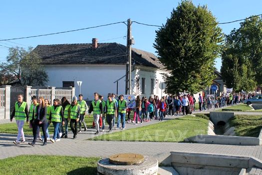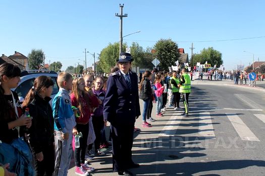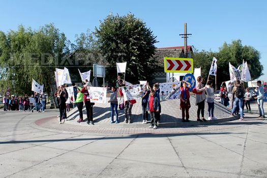 Peste 1.000 de elevi dintre cei 1.400 din oraşul Pecica au participat la un marş prin localitate şi pe marginea DN7, timp de două ore, având în mâini bannere şi pancarte cu mesaje pentru şoferi.