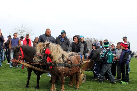 Momentul cel mai aşteptat de cei prezenţi a fost parada cailor prin comună. Călare sau la trăsură, fiecare dintre crescătorii de cabaline a vrut să arate că exemplarul său este cel mai frumos.