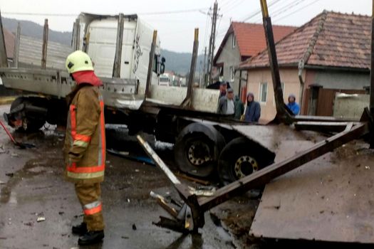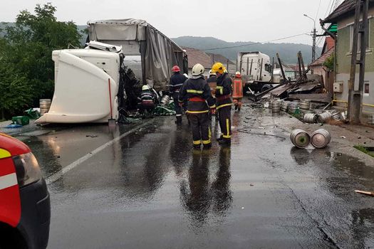 Coliziunea dintre cele două TIR-uri a fost frontală.