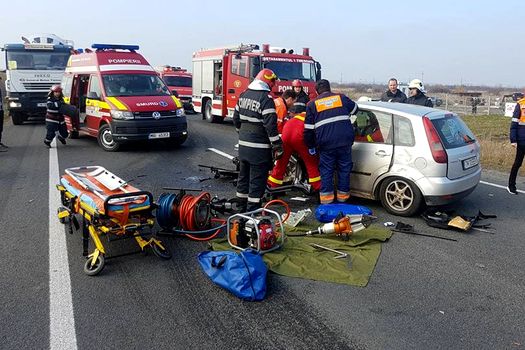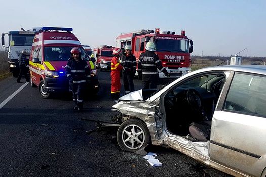 Accidentul rutier a avut loc, sâmbătă, pe DN 6, între Timişoara şi localitatea timişeană Remetea. Potrivit reprezentanţilor Inspectoratului pentru Situaţii de Urgenţă al judeţului Timiş, în accident au fost implicate două maşini, în care se aflau patru persoane, trei bărbaţi şi o femeie, cu vârste cuprinse între 22 şi 28 de ani.