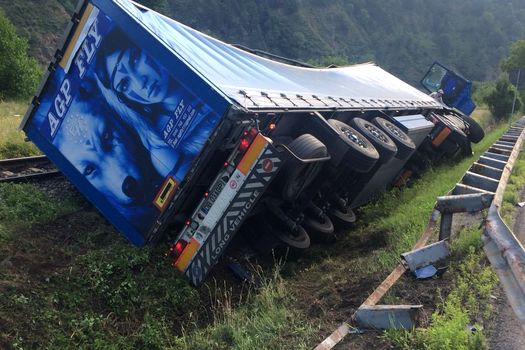 Traficul va fi blocat până când TIR-ul va fi ridicat.