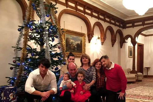 În cea de-a doua fotografie, Traian Băsescu se află alături de soţie, de cele două fiice şi de soţii acestora, precum şi de cei doi nepoţi, iar în spatele lor este un brad împodobit.