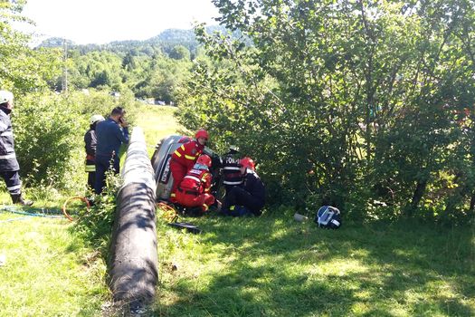 Poliţiştii rutieri sunt la locul producerii accidentului şi fac cercetări pentru a stabili modul în care s-a produs evenimentul.