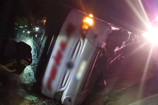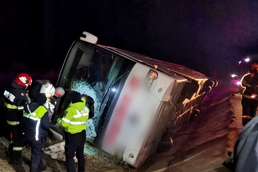 Potrivit pompierilor, şoferul şi cei şase pasageri au fost blocaţi în interior, deoarece uşile de evacuare nu au mai putut fi folosite, fiind pe partea pe care acesta era răsturnat.