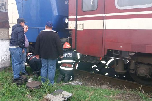Pompierii au reuşit să îl extragă de sub locomotivă.