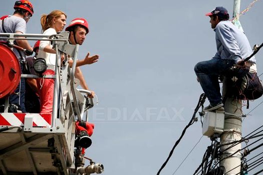 La faţa locului se află o ambulanţă, echipaje de poliţie, o autospecială a pompierilor, dar şi o automacara pe platforma căreia sunt pregătiţi doi pompieri salvatori să intervină.