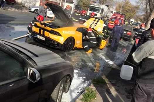 Un Lamborghini a fost cuprins de flăcări în mers, pe intersecţia dintre Şoseaua Andronache şi strada Coacăzelor din Bucureşti, la faţa locului intervenind echipajele de pompieri pentru a stinge focul.