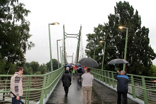Prima pagină » Social » Un pod pietonal care a costat 2,3 milioane de euro, inaugurat în Arad cu artificii – FOTO