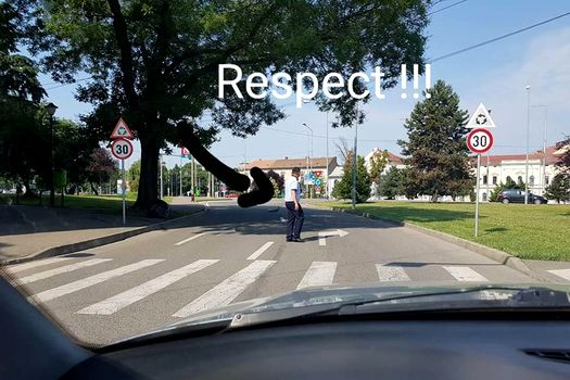 „Colegul nostru, Dorel Mihăieş, subinspector de poliţie la Biroul Rutier al Poliţiei Oradea, a oprit, marţi, traficul rutier pe Calea Clujului din Oradea pentru a permite traversarea străzii de către o familie de răţuşte, cu zece boboci, care se îndrepta spre râul Crişul Repede. Traficul nu era aglomerat, iar răţuştele au ajuns în siguranţă”, a spus Dinu.