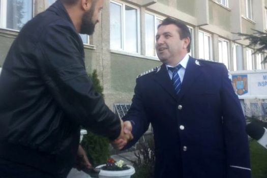 Fotbalistul i-a promis poliţistului o minge din partea echipei Pandurii, pe care să o amplaseze la sediul Inspectoratului Judeţean de Poliţie Gorj.