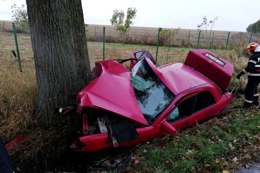 Şoferul a ieşit cu maşina de pe drum şi a lovit puternic un copac de pe margine, pompierii fiind iniţial anunţaţi că bărbatul a rămas încarcerat în urma impactului.