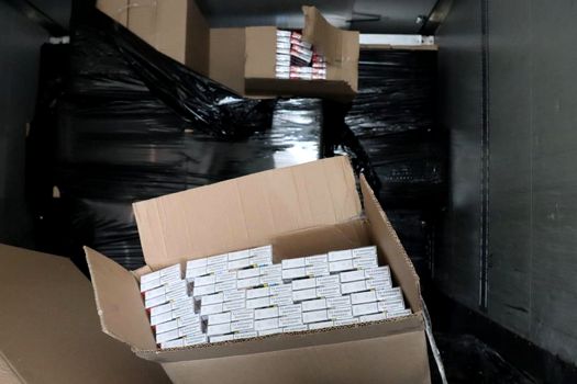 Polițiștii au verificat compartimentul marfă și au descoperit în interiorul remorcii mai multe pachete de țigări pentru care șoferul în cauză nu deținea documente de proveniență.