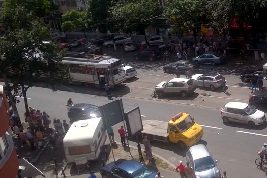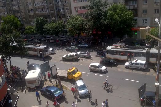 Poliţiştii anunţă că este vorba despre un mijloc de transport în comun care circulă pe linia 46, circulaţia tramvaielor fiind oprită pe sensul dinspre Bulevardul Banu Manta către Şoseaua Nicolae Titulescu.