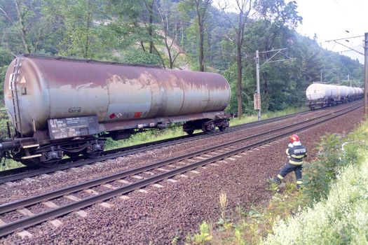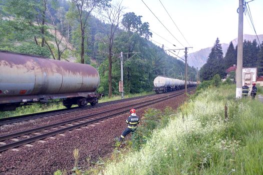 Vagonul este încărcat cu 56 tone de benzină. Acesta a fost decuplat de restul garniturii. Sunt în total 22 vagoane, 18 încărcate cu motorină şi 4 cu benzină.