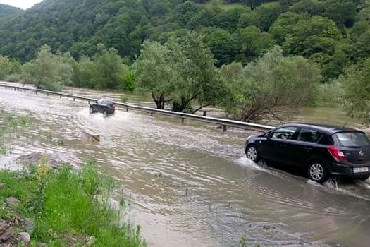 Ea a adăugat că nivelul apei este de cinci-şase centimetri, însă autoturismele pot trece prin zonă, adaptând viteza la condiţiile de drum.