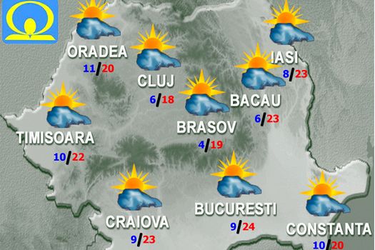 Astfel, se vor înregistra maxime între 16 şi 25 de grade şi minime între 1 şi 12 grade. Cerul va fi variabil, cu unele înnorări în nord-vest şi la munte, unde doar pe arii restrânse vor fi averse slabe de ploaie. Vântul va sufla slab şi moderat, cu uşoare intensificări în zona montană înaltă şi trecător în regiunile vestice şi centrale. În orele dimineţii, cu totul izolat va fi ceaţă.