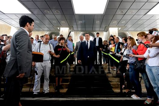 După ce a înmânat cele zece chei, el a mers la cei 100 de primari care aşteptau pe treptele Guvernului pentru a-i saluta, în timp ce Liviu Dragnea le-a spus celorlalţi că le va da el cheile.