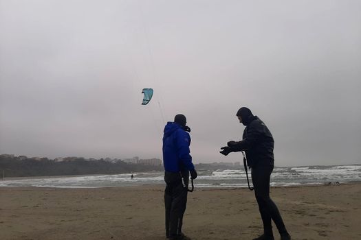 La o temperatură care înregistra la ora prânzului aproximativ cinci grade Celsius şi pe un vânt puternic care mătura plaja constănţeană, mai mulţi curajoşi, împătimiţi de Kitesurfing, şi-au lăsat joburile într-o zi de marţi, pentru a se bucura de o oră de sport nautic.