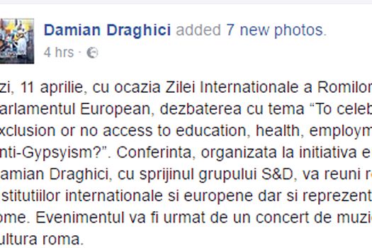 Evenimentul a fost intitulat „To celebrate what? Social exclusion or no acces to education, helath, employment & discrminatation/ Anti-Gypsyism?“ (”Ce sărbătorim? Excluderea socială, lipsa accesului la educaţie, sănătate şi de pe piaţa locurilor de muncă, respectiv discriminarea? Anti-Gypsysmul?”).