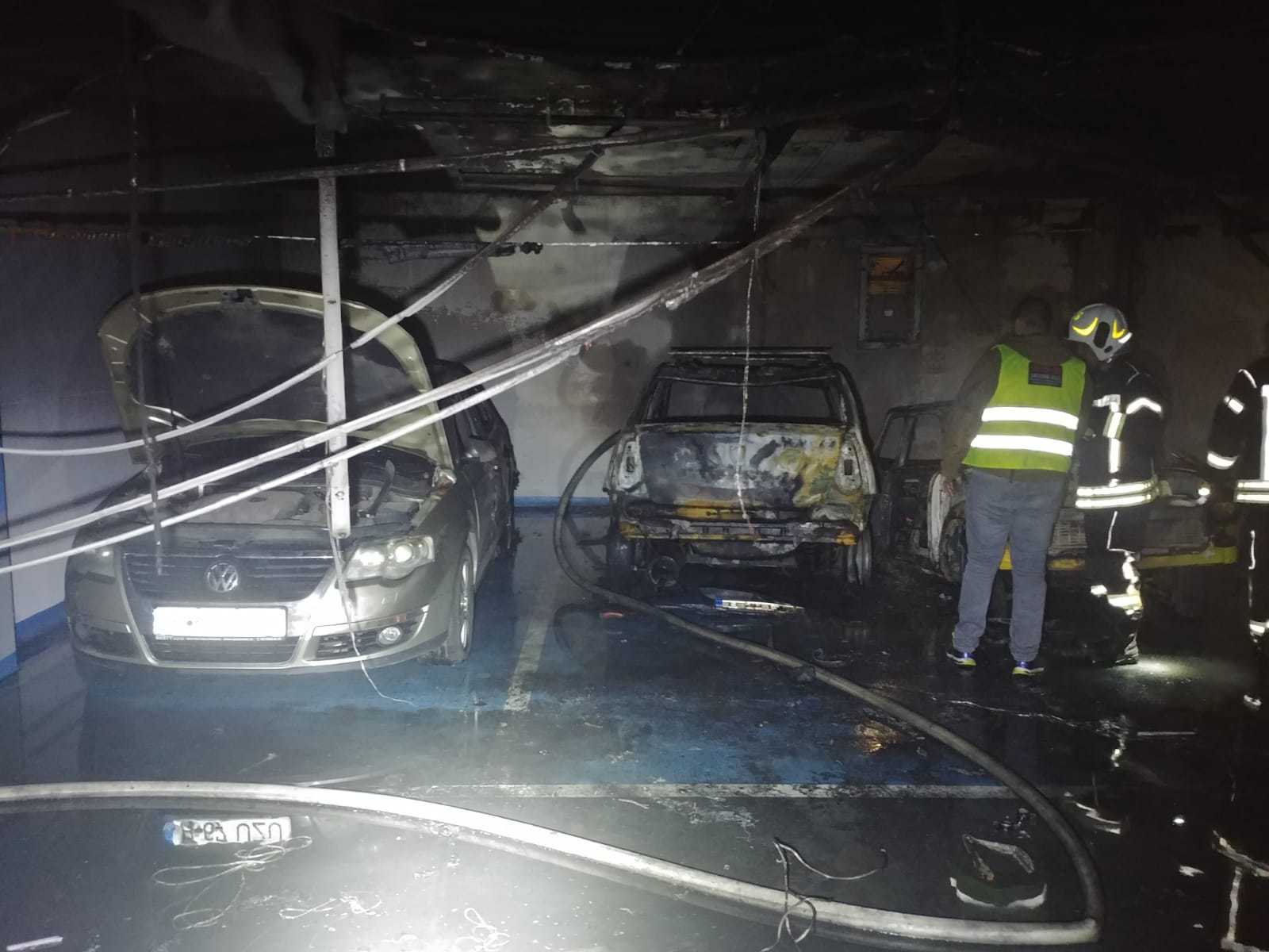 Trei maşini au ars în urma incendiului izbucnit în parcarea subterană a mall-ului Sun Plaza.
