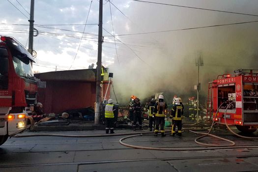 Suprafaţa afectată este de 350 mp. În zonă acţionează 12 autospeciale de stingere.