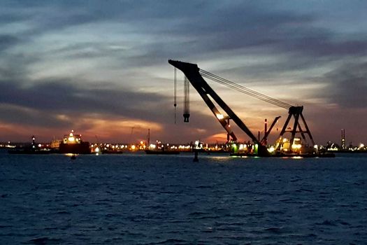 Marţi au fost făcute ultimele operaţiuni pregătitoare pentru aducerea la cheu a navei Queen Hind, care s-a răsturnat în Portul Midia. Epava a fost asigurată din laterale de două barje mari, iar macaraua Neptun, care a adus nava la verticală, a fost deconectată de epavă.