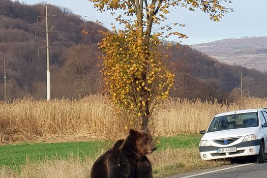 Un urs lovit de maşină pe un drum din Harghita agonizează pe carosabil de mai bine de 24 de ore, fără ca autorităţile să intervină pentru salvarea sa. Ursul este păzit de poliţişti şi jandarmi. Ursul a fost lovit grav de o maşină în care se aflau trei persoane, între care şi un copil, sâmbătă seara, la marginea localităţii Praid din judeţul Harghita.