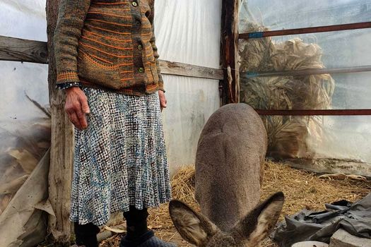 Femeia din Târgu Bujor spune că a găsit căprioara anul trecut într-o tufă cu spini de la marginea unei păduri. Deoarece prin zonă trăiesc numeroşi câini fără stăpân, femeia a decis să ia animalul acasă.