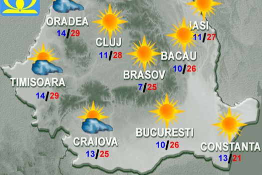 Temperatura maximă se va situa în jurul valorii de 26 de grade, iar cea minimă va fi de 9…11 grade.