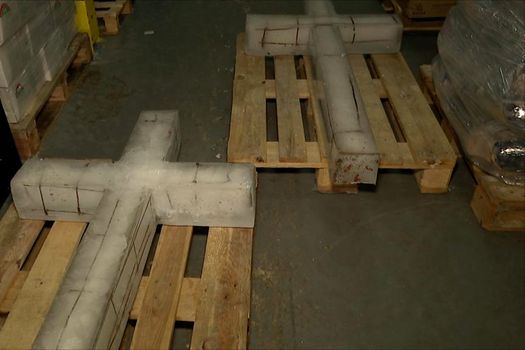 Apa din formele Arhiepiscopiei este ţinută la minus 18 de grade Celsius, timp de două zile, iar crucile de gheaţă vor rămâne în depozitul frigorific până luni, de Bobotează.