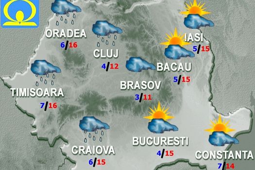Pe crestele montane, precipitaţiile vor mai fi şi sub formă de lapoviţă şi ninsoare, iar vântul va avea unele intensificări. Temperaturile maxime se vor încadra între 9 şi 18 grade, iar cele minime vor fi cuprinse între 0 şi 8 grade. Pe arii restrânse, dimineaţa şi noaptea, va fi ceaţă.