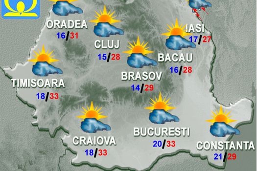 Vremea va fi călduroasă. Cerul va fi variabil, iar vântul va sufla slab până la moderat. Temperatura maximă va fi de 32…33 de grade, iar cea minimă va fi de 18…20 de grade.