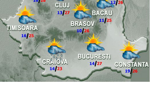 Duminică, vremea va fi în general frumoasă. Cerul va fi variabil, iar vântul va sufla slab şi moderat, cu intensificări trecătoare ziua. Temperaturile maxime vor fi cuprinse între 26 şi 28 de grade, iar cele minime între 19 şi 21 de grade.