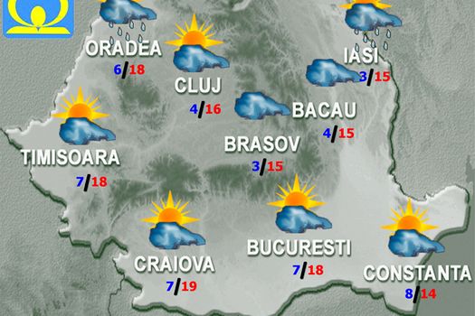În restul zonelor cerul va fi variabil, iar ploile izolate. Vântul va sufla slab şi moderat, cu unele intensificări la munte. Temperaturile maxime vor fi cuprinse între 12 grade în deltă şi 20 de grade în vestul Olteniei, iar cele minime se vor situa între 2 şi 9 grade, mai scăzute în depresiuni. Izolat vor fi condiţii de ceaţă.