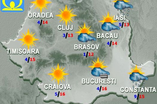 Valorile termice se vor menţine apropiate de cele normale pentru această dată. Cerul va fi variabil, dar în prima parte a zilei, local în zonele joase de relief din regiunile sudice şi pe arii restrânse în cele vestice, nord-vestice şi centrale va fi ceaţă sau nebulozitate joasă. Seara şi, mai ales noaptea, cerul se va înnora treptat în vest, nord, centru şi nord-est, însă numai izolat este posibil să plouă slab în extremitatea nordică. Spre sfârşitul intervalului, îndeosebi în sud şi sud-est, pe arii restrânse se va semnala ceaţă şi nori joşi. Vântul va sufla slab şi moderat, cu unele intensificări pe crestele montane. Temperaturile maxime vor fi cuprinse între 10 şi 18 grade, iar cele minime se vor încadra între -4 grade în estul Transilvaniei şi 9…11 grade pe litoral.