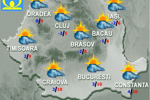 Seara şi în cursul nopţii de joi, înnorările se vor extinde. Vor cădea precipitaţii în general slabe, astfel: ninsori la munte, predominant ninsori în Moldova şi local în Transilvania, ploi în sudul şi sud-estul teritoriului şi pe arii restrânse în rest. Vântul se va intensifica treptat, începând de după-amiază în Banat, apoi şi în celelalte regiuni, vitezele mai mari la rafală urmând a se înregistra pe crestele montane şi în sudul ţării. Temperaturile maxime vor fi cuprinse între 3 grade în nordul Moldovei şi 12 grade în sud-est, iar cele minime se vor încadra între -4 şi 5 grade, uşor mai scăzute în depresiuni. Izolat în zonele joase vor fi condiţii de ceaţă.
