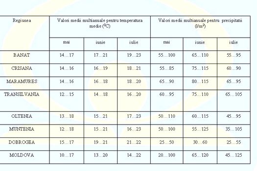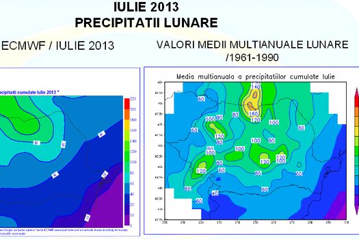 Cantităţile lunare de precipitaţii se pot situa sub normele climatologice în cea mai mare parte a teritoriului.