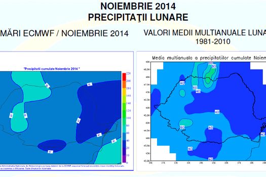 Cantităţile lunare de precipitaţii vor fi excedentare în regiunile centrale ale ţării, iar în restul teritoriului vor fi apropiate de mediile climatologice.