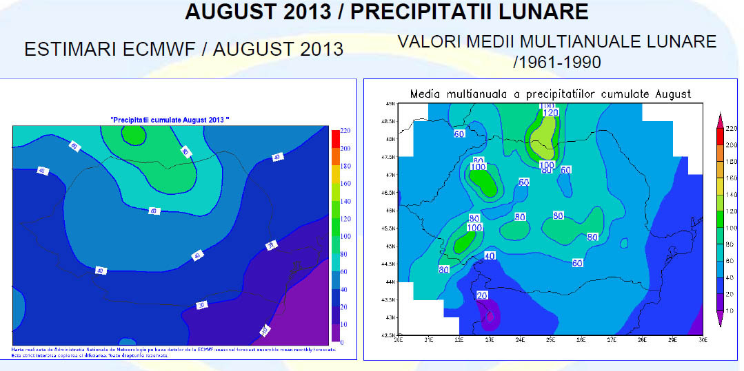 Cantităţile lunare de precipitaţii vor înregistra valori sub normele climatologice pe aproape întreg teritoriul ţării.