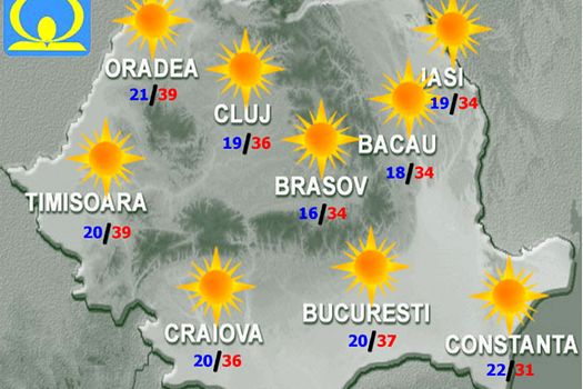 Vremea va fi caniculară în vestul, centrul şi sudul ţării şi izolat în restul teritoriului, cu temperaturi maxime cuprinse între 30 de grade pe litoral şi 40 de grade în Câmpia de Vest. Indicele temperatură-umezeală (ITU) va atinge şi depăşi pragul critic de 80 de unităţi în zonele de câmpie şi local în cele de deal şi podiş.