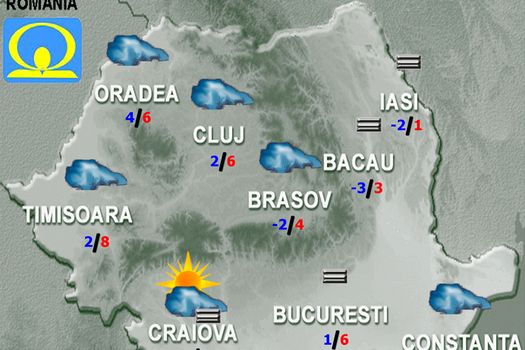 Vineri, vremea se va încălzi uşor faţă de ziua anterioară în aproape toată ţara. În regiunile intracarpatice şi la munte cerul va fi mai mult noros şi local, în special ziua, va ploua, iar în nordul Carpaţilor Orientali vor fi precipitaţii mixte. În zonele joase de relief se va semnala ceaţă sau nebulozitate stratiformă, posibil persistentă şi asociată cu burniţă în sud şi est. Vântul va sufla slab şi moderat, cu intensificări pe crestele montane. Temperaturile maxime vor fi cuprinse între 4 şi 12 grade, mai scăzute în zonele cu ceaţă persistentă, iar cele minime se vor încadra între -3 şi 6 grade.