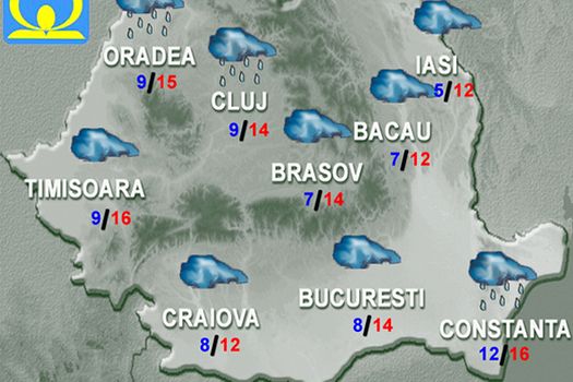 În nordul Carpaţilor Orientali, în cursul nopţii, vor fi posibile şi precipitaţii mixte. Vântul va sufla slab şi moderat. Temperaturile maxime se vor încadra între 9 şi 17 grade, iar cele minime între 3 şi 13 grade.