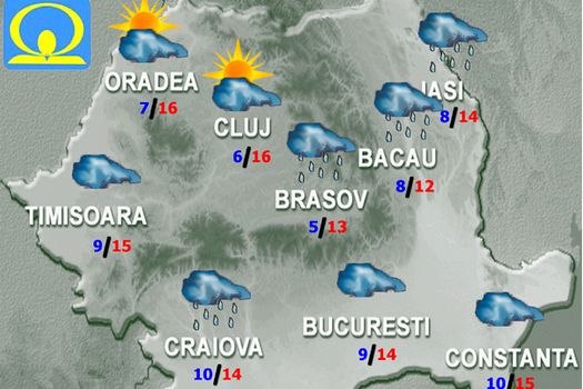 Miercuri, regimul termic va fi caracterizat de valori uşor mai ridicate decât ar fi normal la această dată în cea mai mare parte a ţării. Cerul va fi temporar noros. Mai ales spre seară şi noaptea, va ploua slab în vestul, centrul şi nordul ţării şi local în rest. În cursul nopţii, în zona de munte, mai ales în nordul Carpaţilor Orientali, precipitaţiile, slabe cantitativ, vor fi şi sub formă de lapoviţă şi ninsoare.