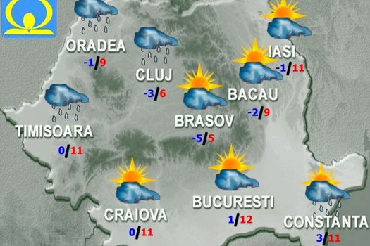 Cerul va fi variabil, cu unele înnorări în orele dimineţii şi din nou în a doua parte a nopţii. Vântul va avea intensificări temporare în cursul zilei, apoi va deveni slab până la moderat. Temperatura maximă va fi de 11…12 grade, iar minima, mai scăzută decât în noaptea precedentă, se va situa în jurul valorii de 0 grade, regim termic ce va continua să fie mai ridicat faţă de cel climatologic specific datei.
