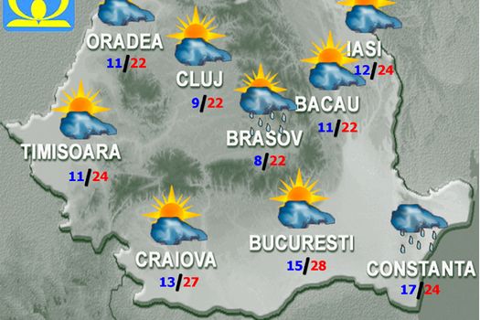 Temperatura maximă va fi de 27…28 de grade, iar cea minimă se va situa în jurul valorii de 14 grade.
