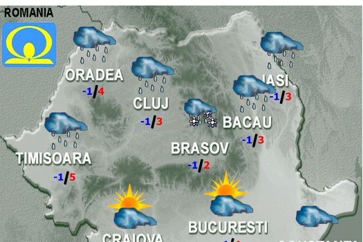 Vremea va fi în general frumoasă, dar relativ rece dimineaţa şi noaptea în majoritatea zonelor. Cerul va fi variabil, cu unele înnorări, mai ales ziua, în Maramureş şi în zona Carpaţilor Orientali, unde local vor cădea precipitaţii slabe, predominant sub formă de ninsoare, dar şi în Dobrogea, unde izolat vor mai fi în special ploi slabe. Mai ales dimineaţa şi noaptea, local în zonele joase va fi ceaţă. Vântul va sufla slab şi moderat, cu unele intensificări la munte şi pe litoral. Temperaturile maxime vor fi cuprinse între 0 şi 10 grade, iar cele minime se vor încadra între -8 şi 3 grade, mai scăzute în estul Transilvaniei şi în nordul Moldovei, spre -10…-13 grade.