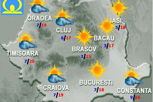 Vântul va sufla slab şi moderat, cu unele intensificări ziua. Temperaturile maxime, apropiate de cele normale în cea mai mare parte a teritoriului, se vor încadra între 13 şi 23 de grade, iar minimele vor fi cuprinse între 1 grad în depresiunile din estul Transilvaniei şi 13 grade în deltă.