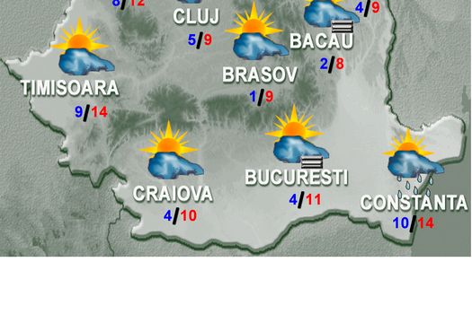 Vântul va continua să prezinte intensificări la munte şi în regiunile vestice, dar temporar şi la cote mai reduse şi în cele centrale şi estice. Temperaturile maxime se vor încadra între 9 grade în nordul Moldovei şi 21 de grade în Banat, iar cele minime între 6 şi 16 grade, mai coborâte în depresiunile Carpaţilor Orientali. Dimineaţa şi noaptea, în Câmpia Românâ, pe arii restrânse vor fi condiţii de ceaţă.