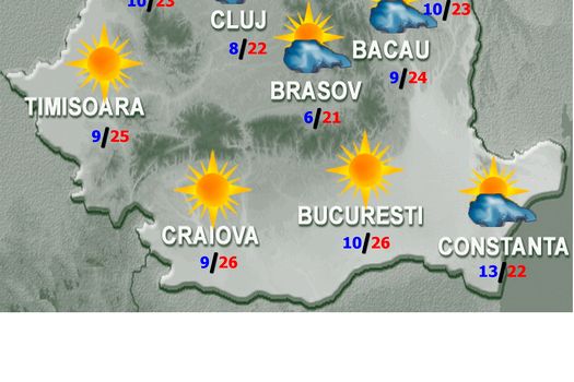 Vremea va fi frumoasă şi se va încălzi. Cerul va fi mai mult senin, iar vântul va sufla slab. Temperatura maximă va fi de 25…26 de grade, iar cea minimă va fi de 8…10 grade.